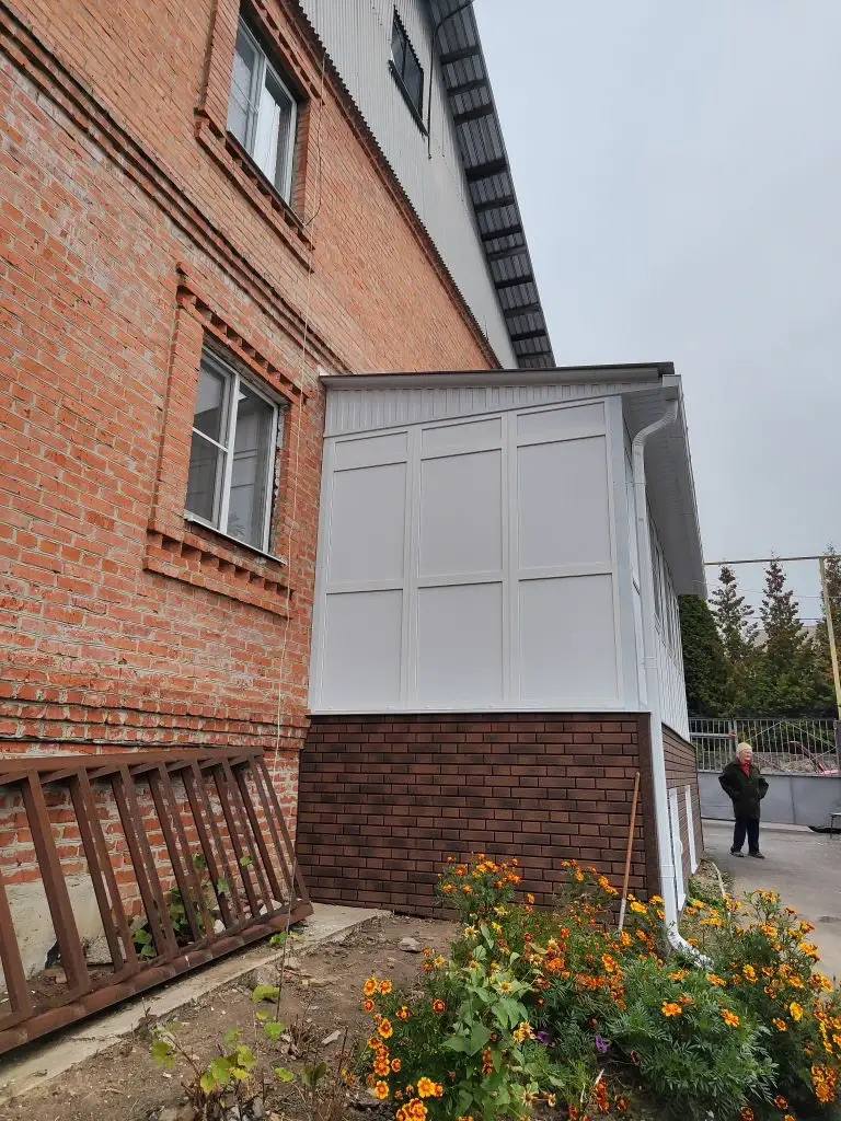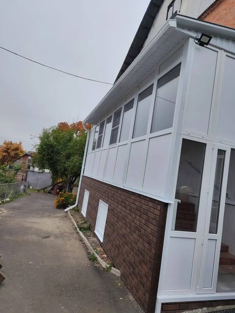 Остекление пвх профилем пристройки с крыльцом и выходом 9 м.