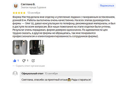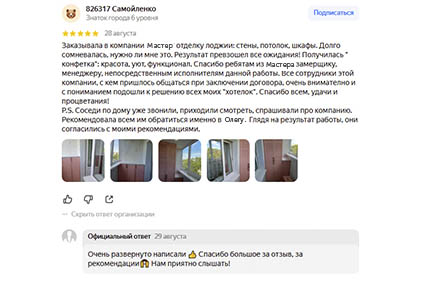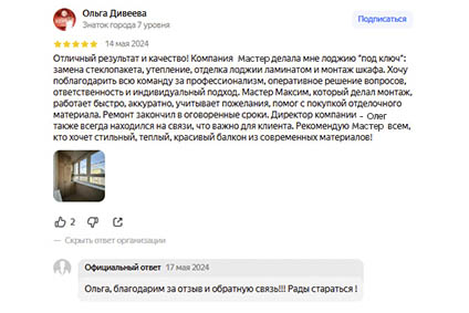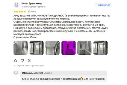 ...все работы по установке балконного блока были выполнены качественно, аккуратно и в срок...